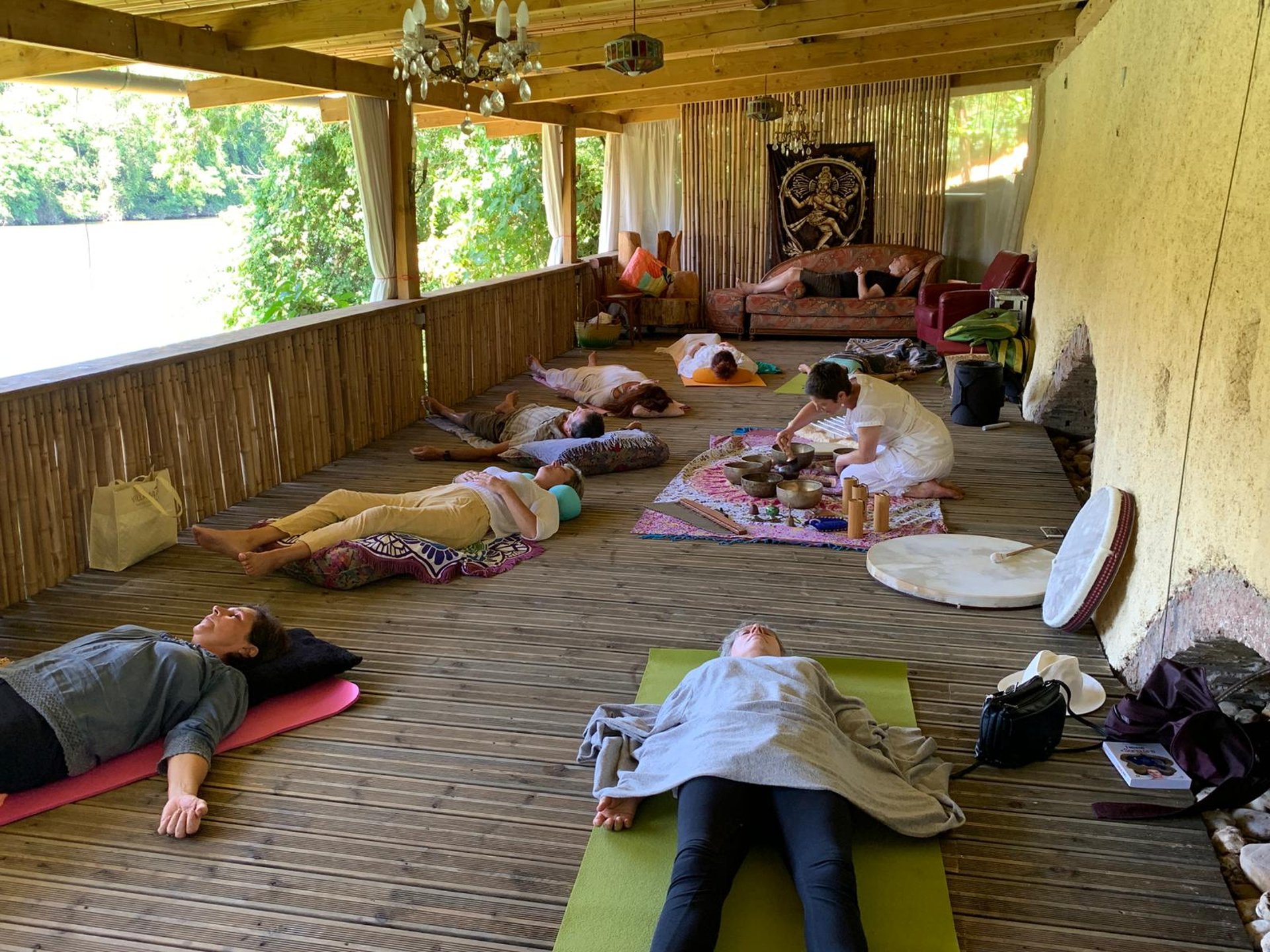 Formée aux pratiques de chant de mantras, yoga du son, méditation sonore et relaxation par la vibration, Sandrine a développé une approche qui associe :